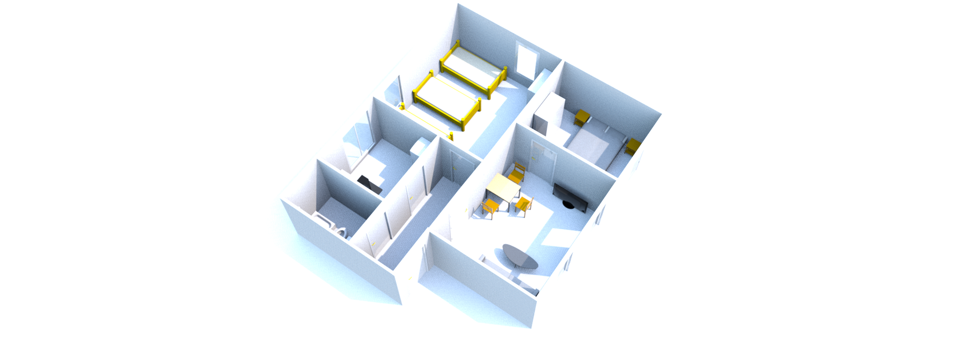 3 Einzelbetten in 200 x 90 cm mit TV,